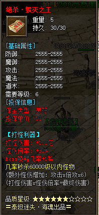 封魔谷每60分钟刷新50只【神墓使者[福利]】.有几率直接掉落神墓随机直传卷轴和大量灵符.屌丝的福利