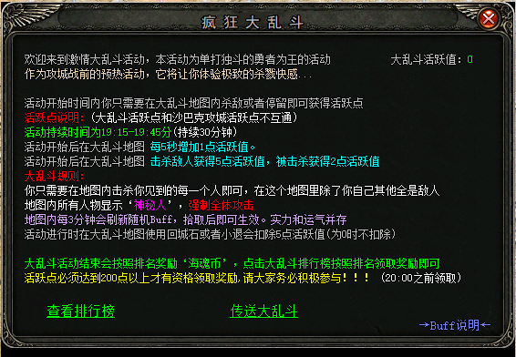 19:15-19:45开启疯狂大乱斗,个人混战,所见既是敌人,干就完了...奖励海魂币