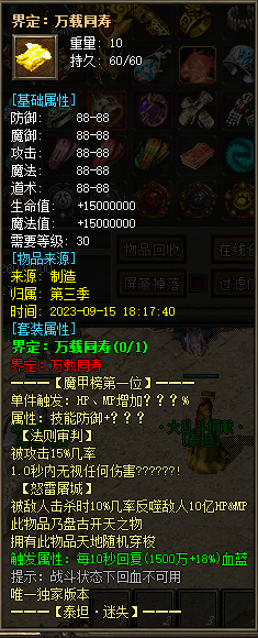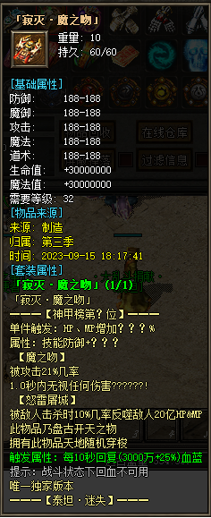 4.魔龙和封魔的装备回收材料获取提升10倍